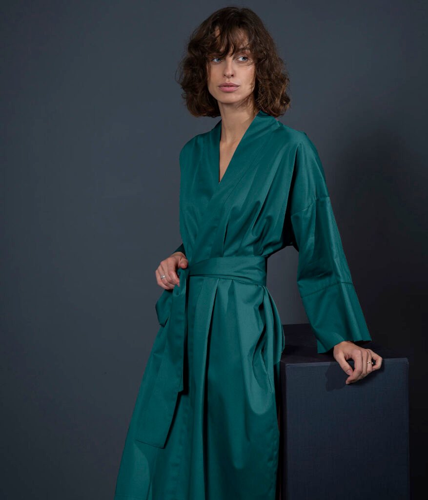 Sateen bathrobe kimono Solid Teal