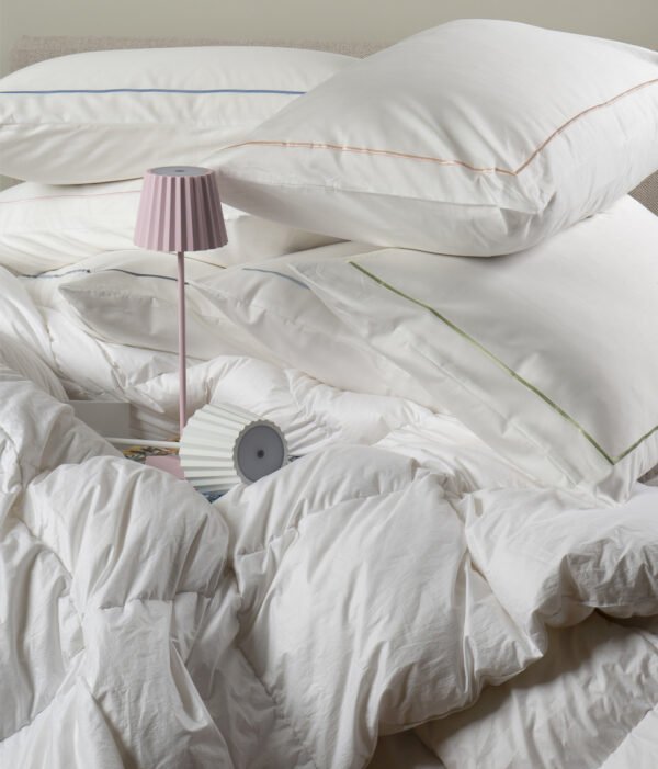 Sateen pillowcase White with cyclamen stitching