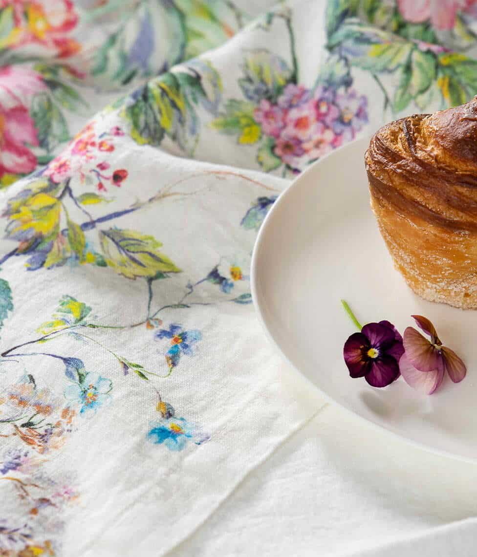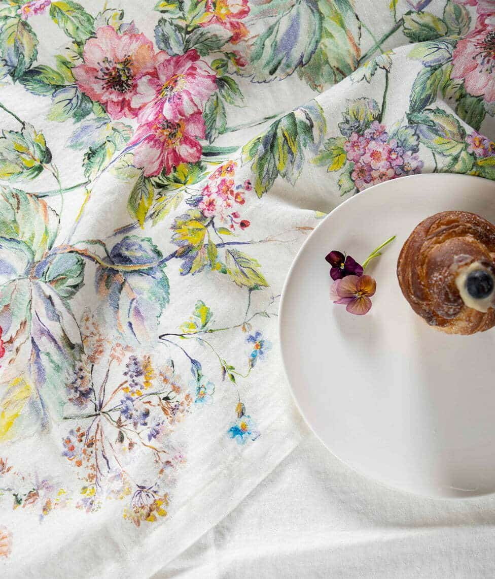 Provance table textile floral patterns, created with light, bright strokes, will bring a summer breeze to your home.