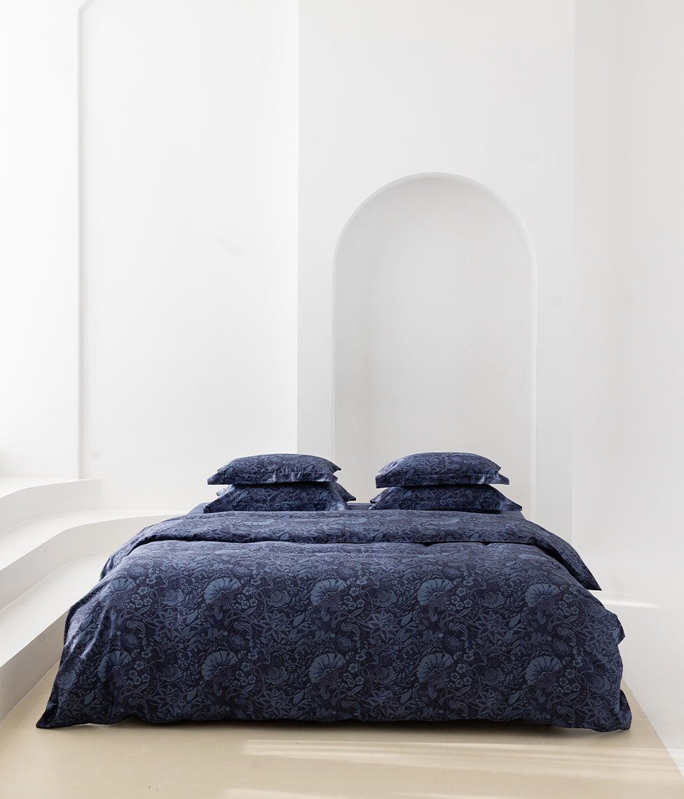 Boho Indigo is a design that exudes deep peace and subtle luxury. A rich dark blue background becomes an elegant base on which floral and plant motifs gently stand out. This combination creates a stylish, harmonious and sophisticated mood, filling the interior with quiet elegance and a cozy, deep atmosphere. The design goes well with dark monochrome tones: Anthracite, Oxford Blue and Black Sand.