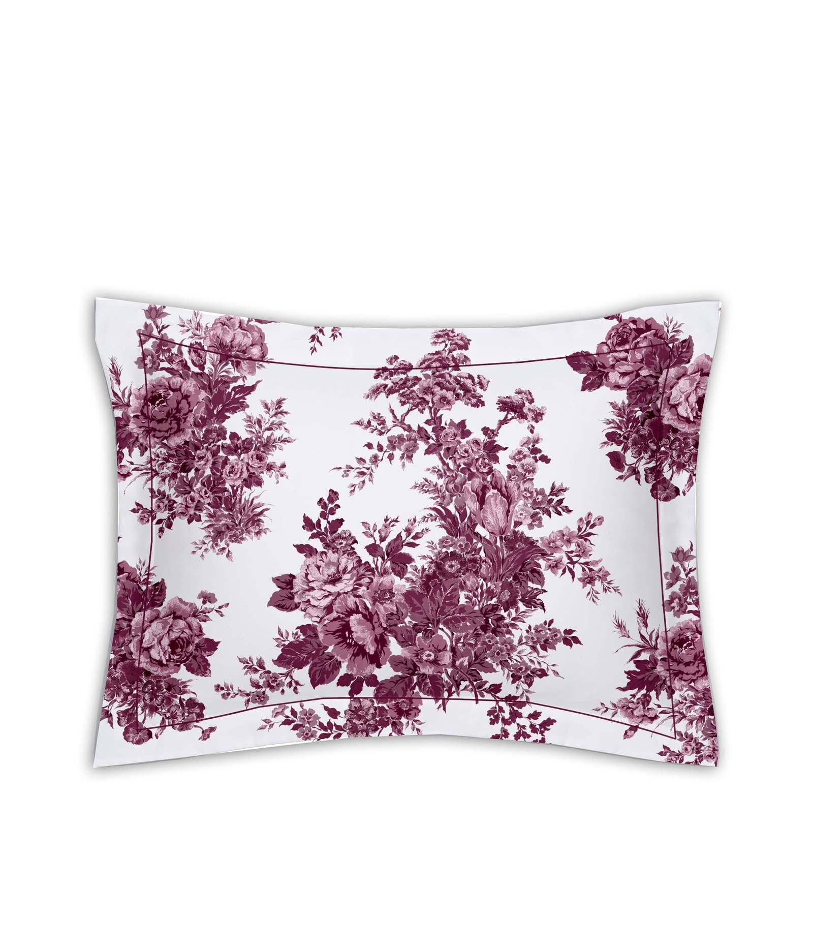 Sateen pillowcase with embroidery Eternal Rose Burgundy/Optical White