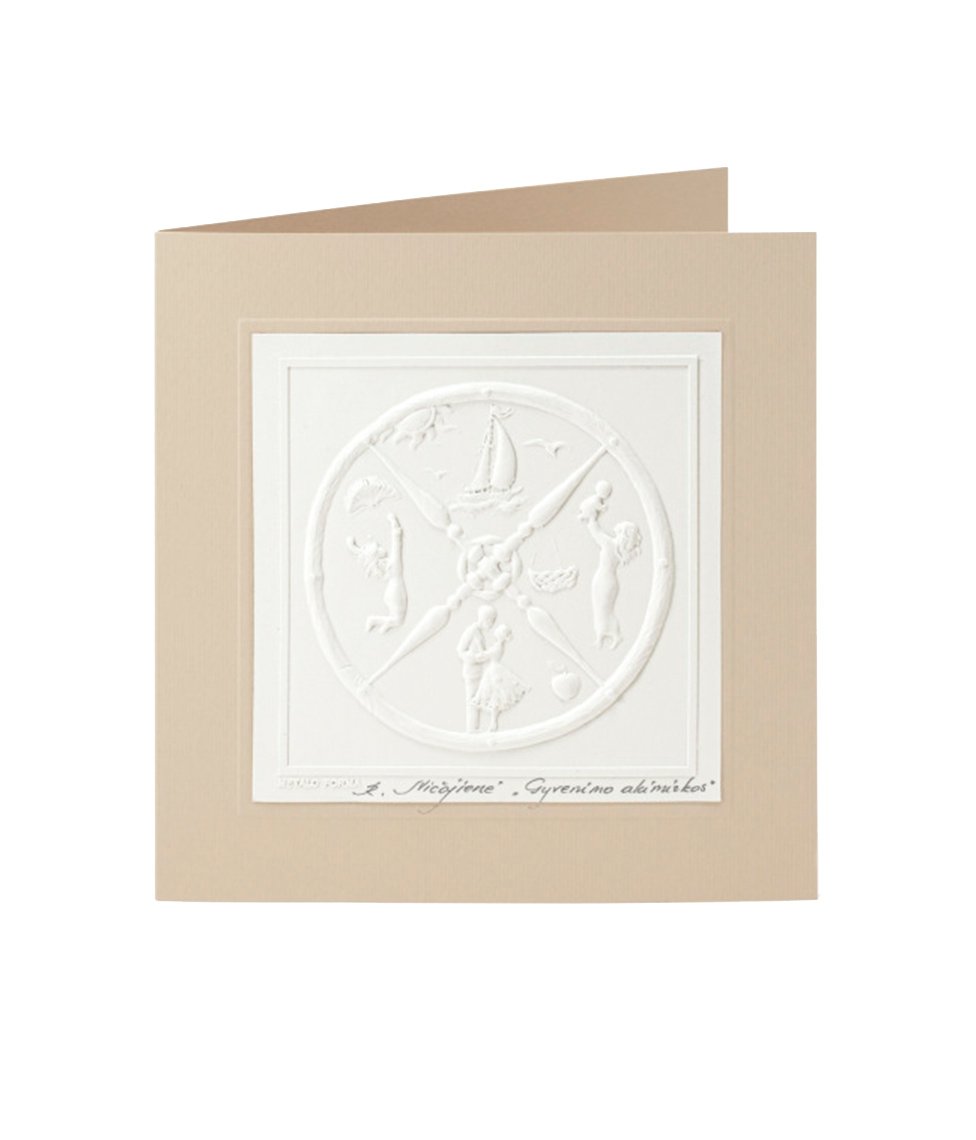 Rankų darbo dvigubas reljefinis atvirukas 16x16cm