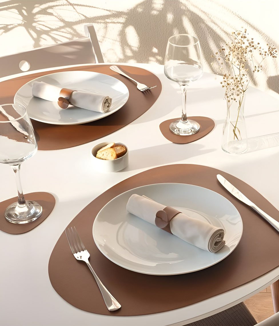 Suteikite stalo serviravimui tvarios prabangos pojūtį. Šis apvalus, asimetriškos formos perdirbtos odos padėkliukas savo organišku siluetu sujungia natūralų medžiagos solidumą su kasdieniu praktiškumu – sodri tekstūra ne tik džiugina akį, bet ir patikimai saugo stalo paviršių nuo karščio bei įbrėžimų. Lengva priežiūra leidžia mėgautis akimirka be rūpesčių, paverčiant estetiką ir atsakingą vartojimą neatsiejama jūsų namų jaukumo dalimi.