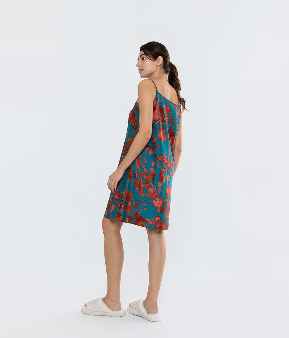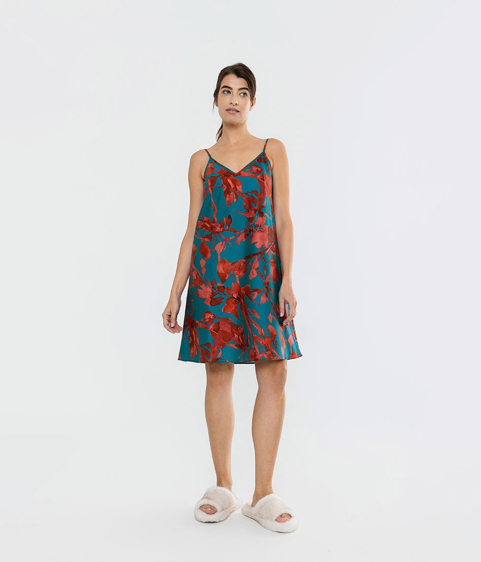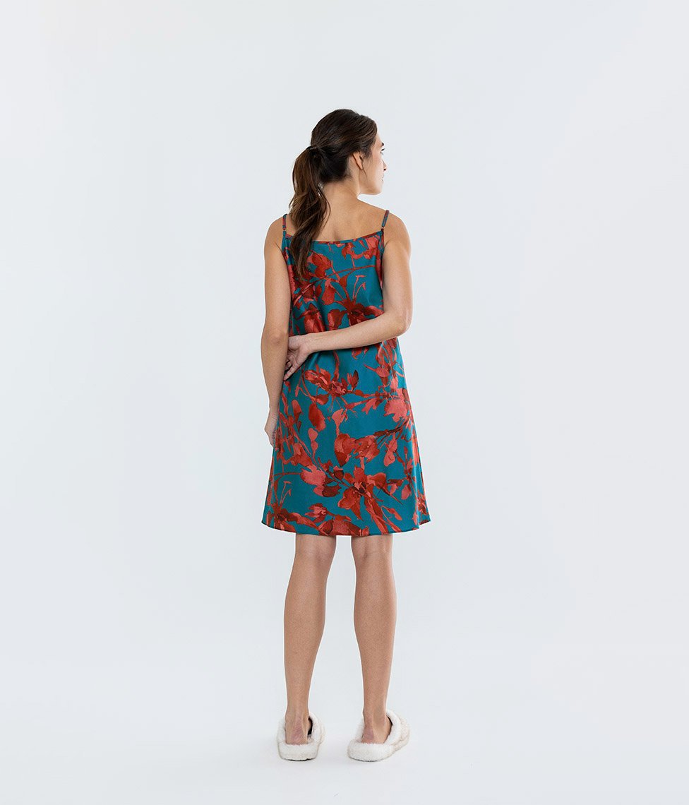 Šie naktinukai pasiūti iš įstrižai kirpto medvilnės satino – tai suteikia audiniui tamprumo, leidžiančio maloniai priglusti prie kūno. Elegantiška V formos iškirptė ir laisvesnis modelis užtikrina komfortą dėvėjimo ir miego metu, o reguliuojamos petnešėlės leidžia idealiai pritaikyti naktinių ilgį.