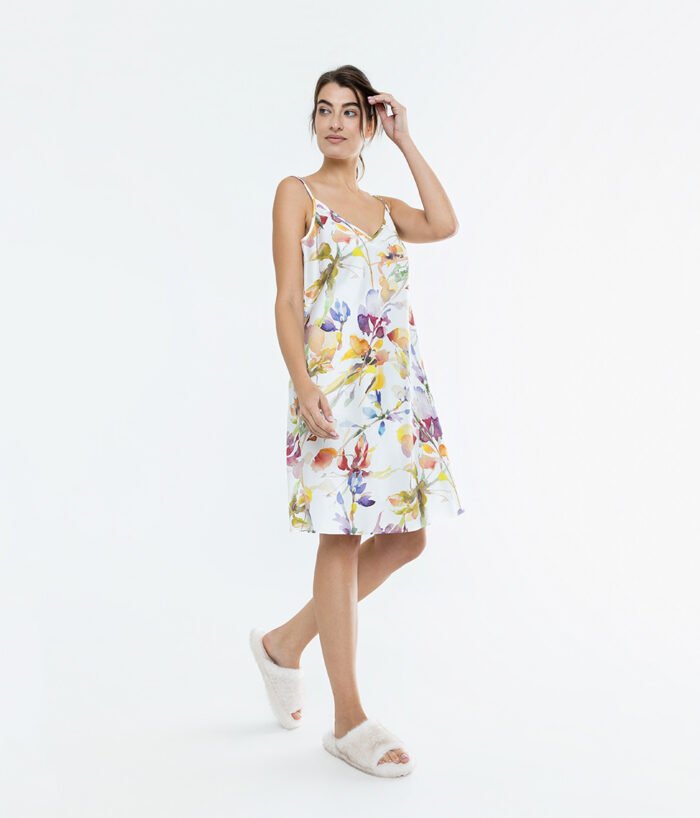 Šie naktinukai pasiūti iš įstrižai kirpto medvilnės satino – tai suteikia audiniui tamprumo, leidžiančio maloniai priglusti prie kūno. Elegantiška V formos iškirptė ir laisvesnis modelis užtikrina komfortą dėvėjimo ir miego metu, o reguliuojamos petnešėlės leidžia idealiai pritaikyti naktinių ilgį.
