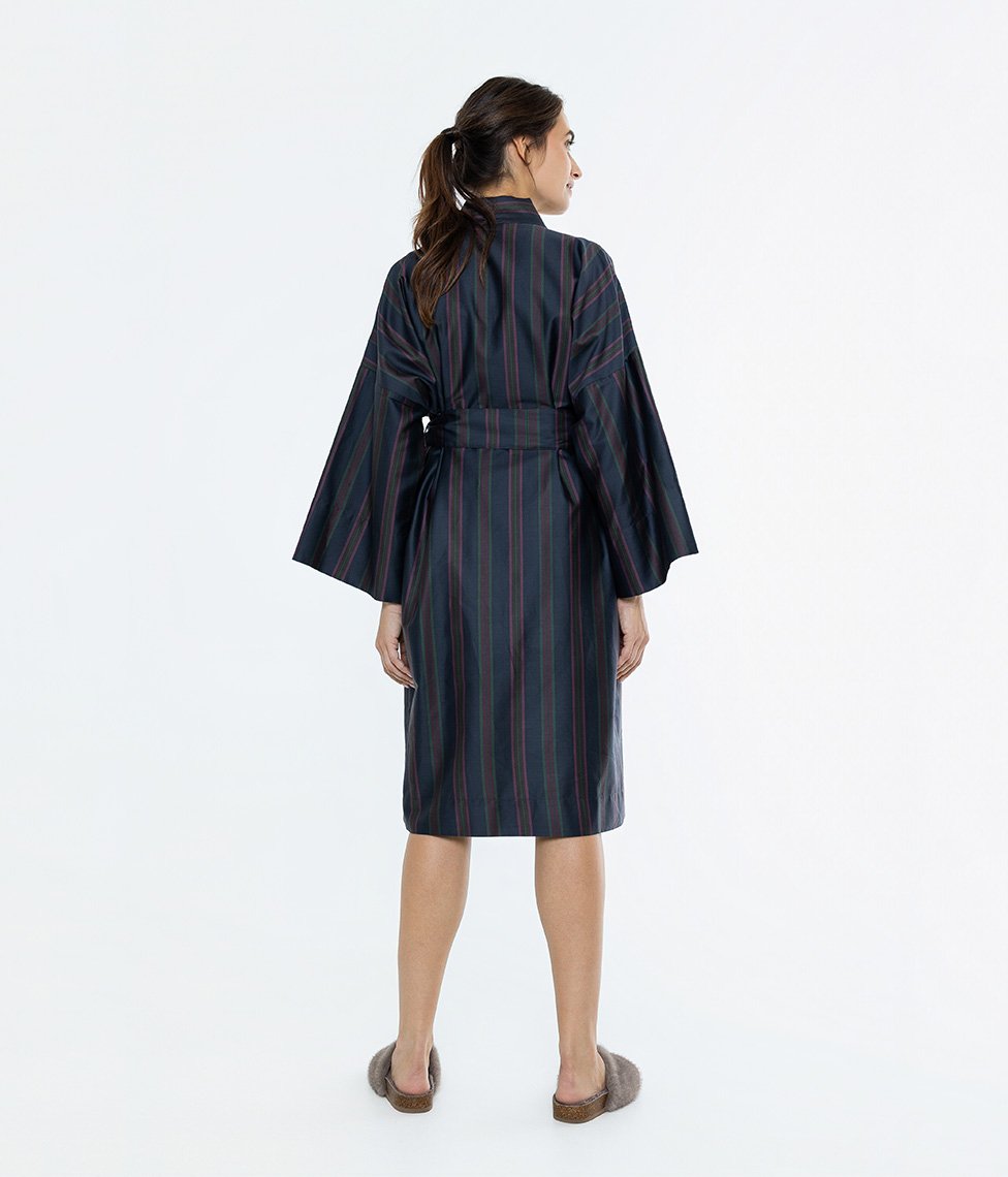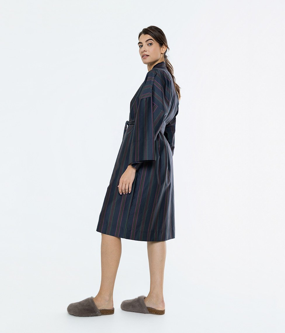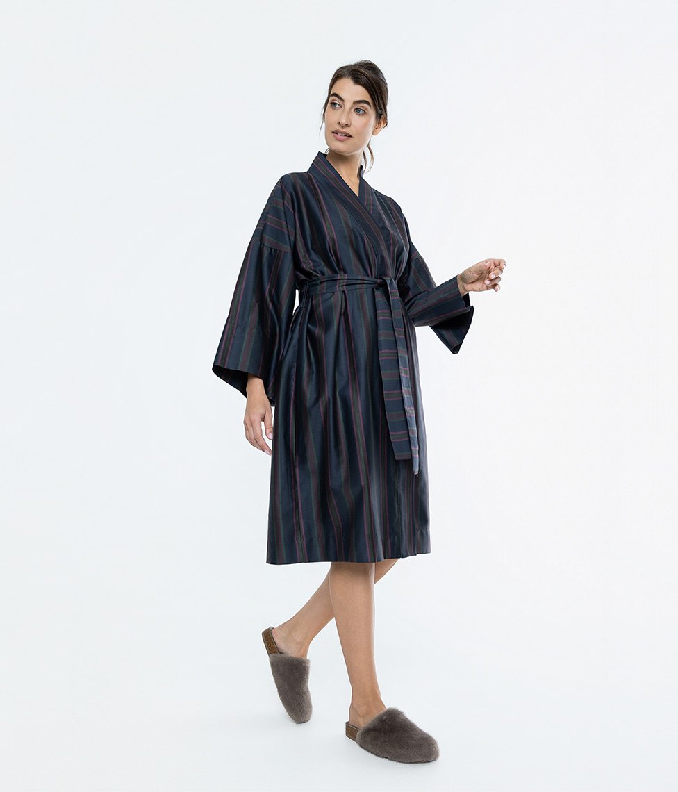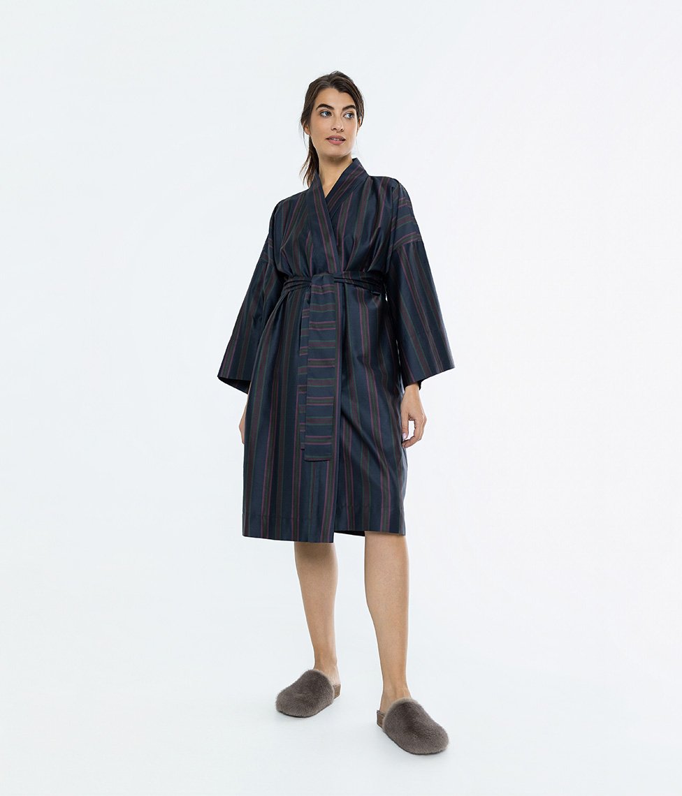Mėgaukitės mūsų 100% ilgapluoštės šukuotinės medvilnės kimono chalatu ir džiaukitės lengva jos priežiūra: audinio gamybos procese pritaikytas „lengvos priežiūros” standartas, kurio dėka audinys beveik nesiglamžo, lengvai lyginasi, nesitraukia ir daug ilgiau blunka, nei įprasti medvilnės gaminiai.