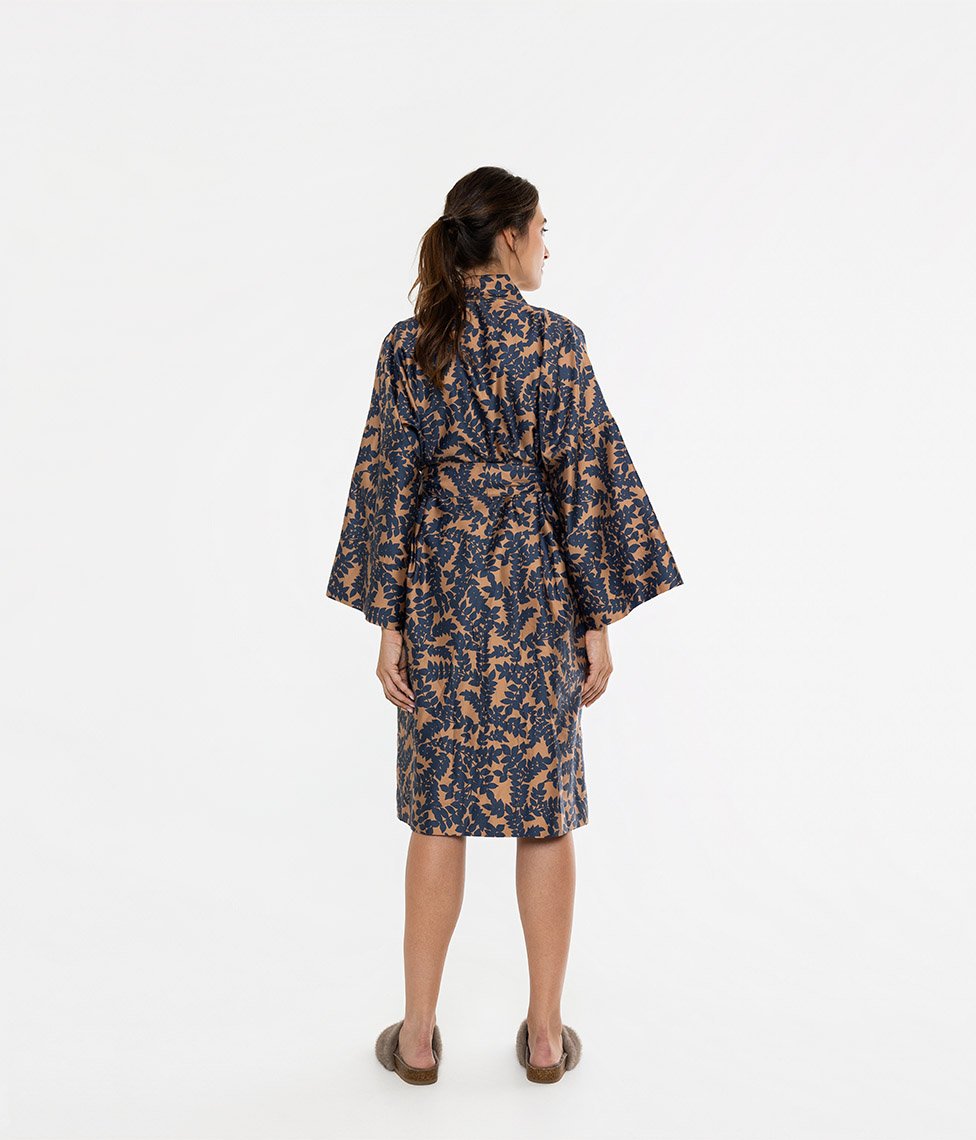 Mėgaukitės mūsų 100% ilgapluoštės šukuotinės medvilnės kimono chalatu ir džiaukitės lengva jos priežiūra: audinio gamybos procese pritaikytas „lengvos priežiūros” standartas, kurio dėka audinys beveik nesiglamžo, lengvai lyginasi, nesitraukia ir daug ilgiau blunka, nei įprasti medvilnės gaminiai.