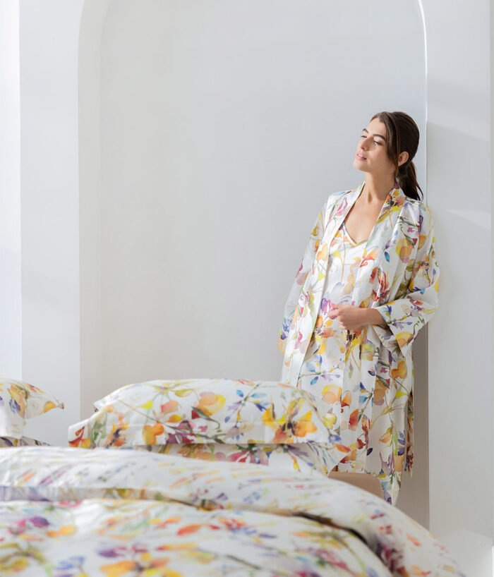 Mėgaukitės mūsų 100% ilgapluoštės šukuotinės medvilnės kimono chalatu ir džiaukitės lengva jos priežiūra: audinio gamybos procese pritaikytas „lengvos priežiūros” standartas, kurio dėka audinys beveik nesiglamžo, lengvai lyginasi, nesitraukia ir daug ilgiau blunka, nei įprasti medvilnės gaminiai.