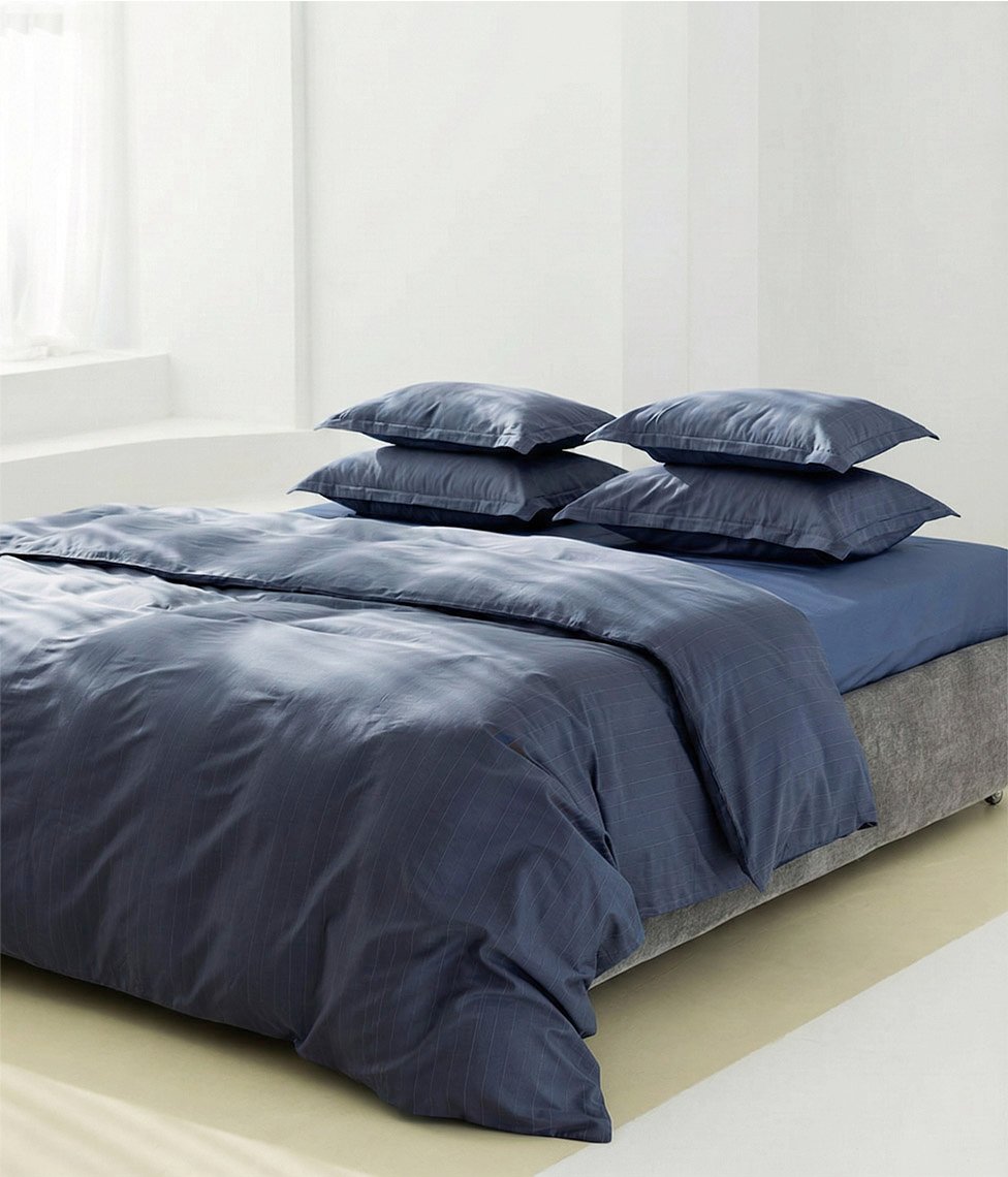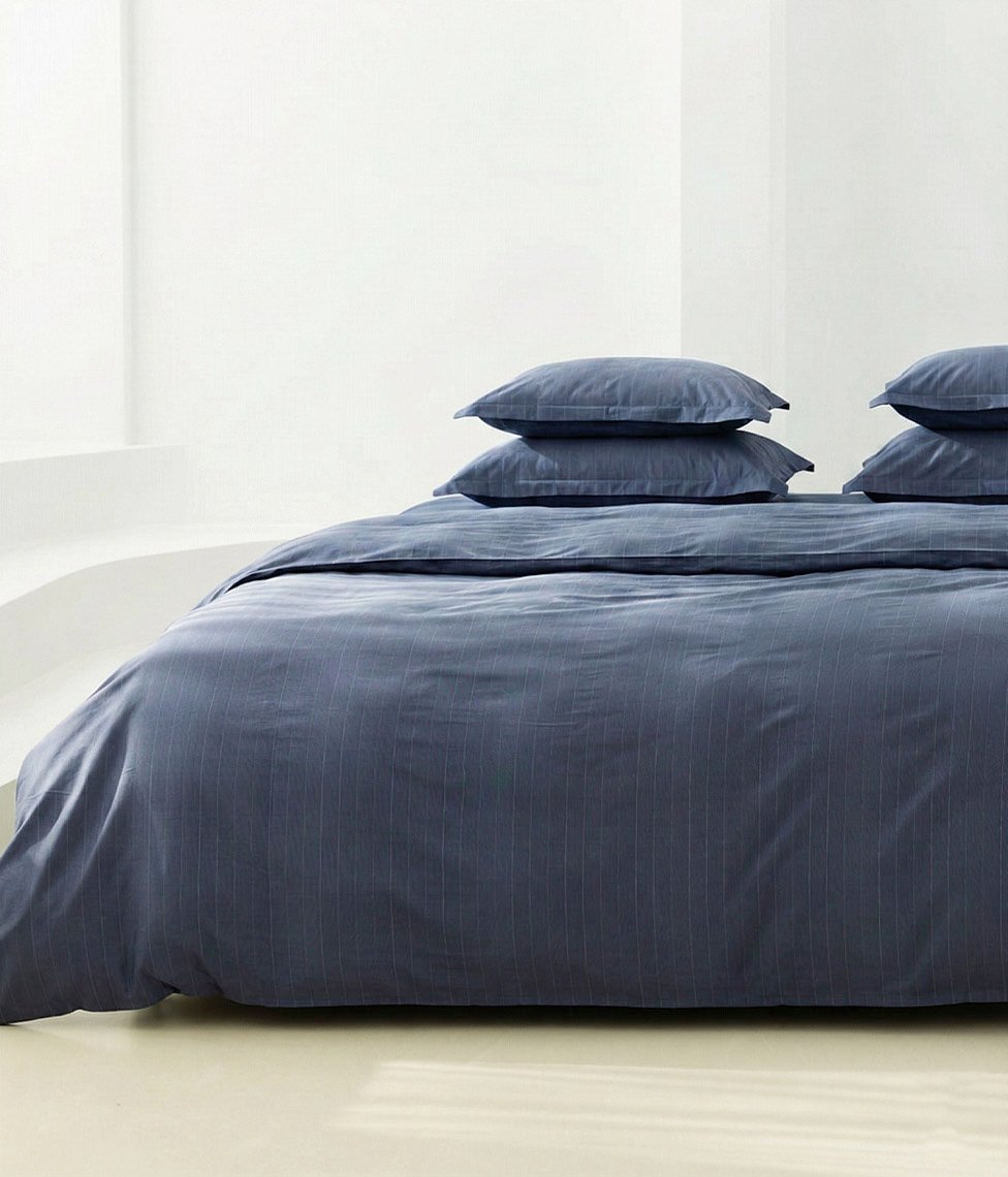 „Stripe in Line Indigo“ – modernus ir minimalistinis dizainas, kuriame elegancija atsiskleidžia subtilumu. Vertikalios linijos kuria ramų ritmą ir tvarkos pojūtį, vizualiai išgrynina erdvę, suteikdamos jai rafinuoto modernumo. Santūrus kontrastas išlaiko ramybę, o aiški linijų struktūra pabrėžia stilių ir nepriekaištingą skonį – universalus pasirinkimas tiek šiuolaikiniam, tiek klasikiniam interjerui.