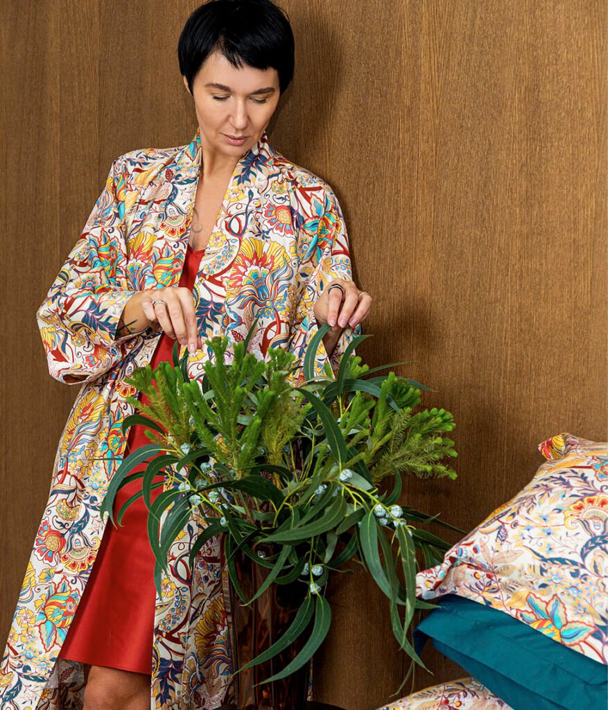 Satino Chalatas Kimono Orchids Modern